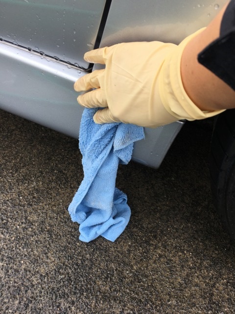 当店では洗車の下洗いにはスポンジでなくタオルを利用しているのですが(洗濯機にかけやすいため)これがまた下の画像のように地面についてしまわないように気を付けるのに骨を折っておりました。