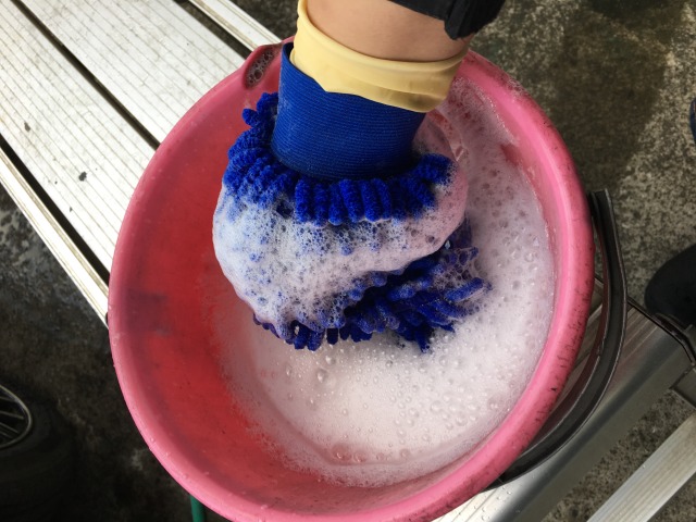 ただ一点、もう少し指が隙間に入りやすいデザインだったら…と思い、ドライヤーで髪を乾かしやすくする手袋を洗車の下洗いに使用してみました。